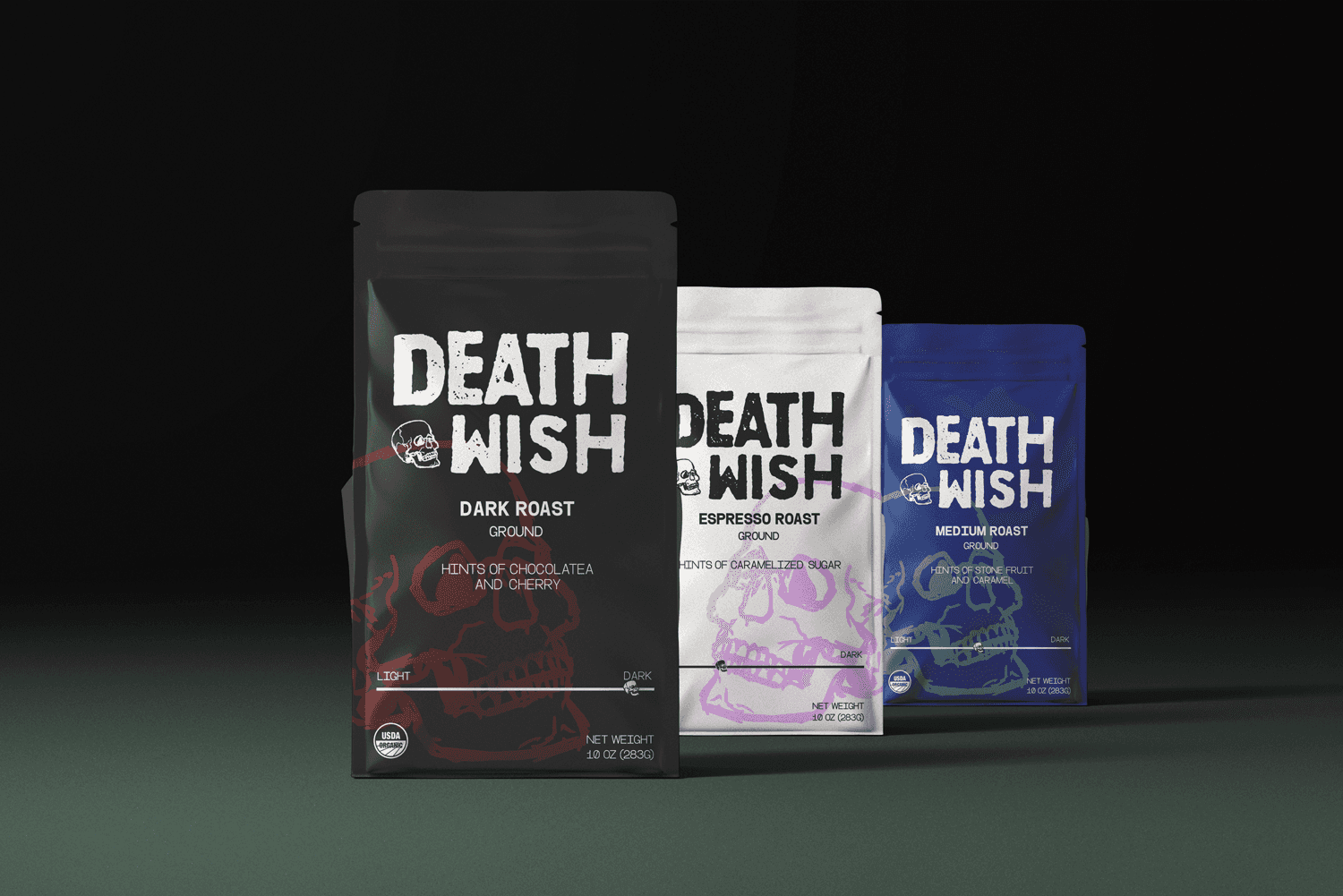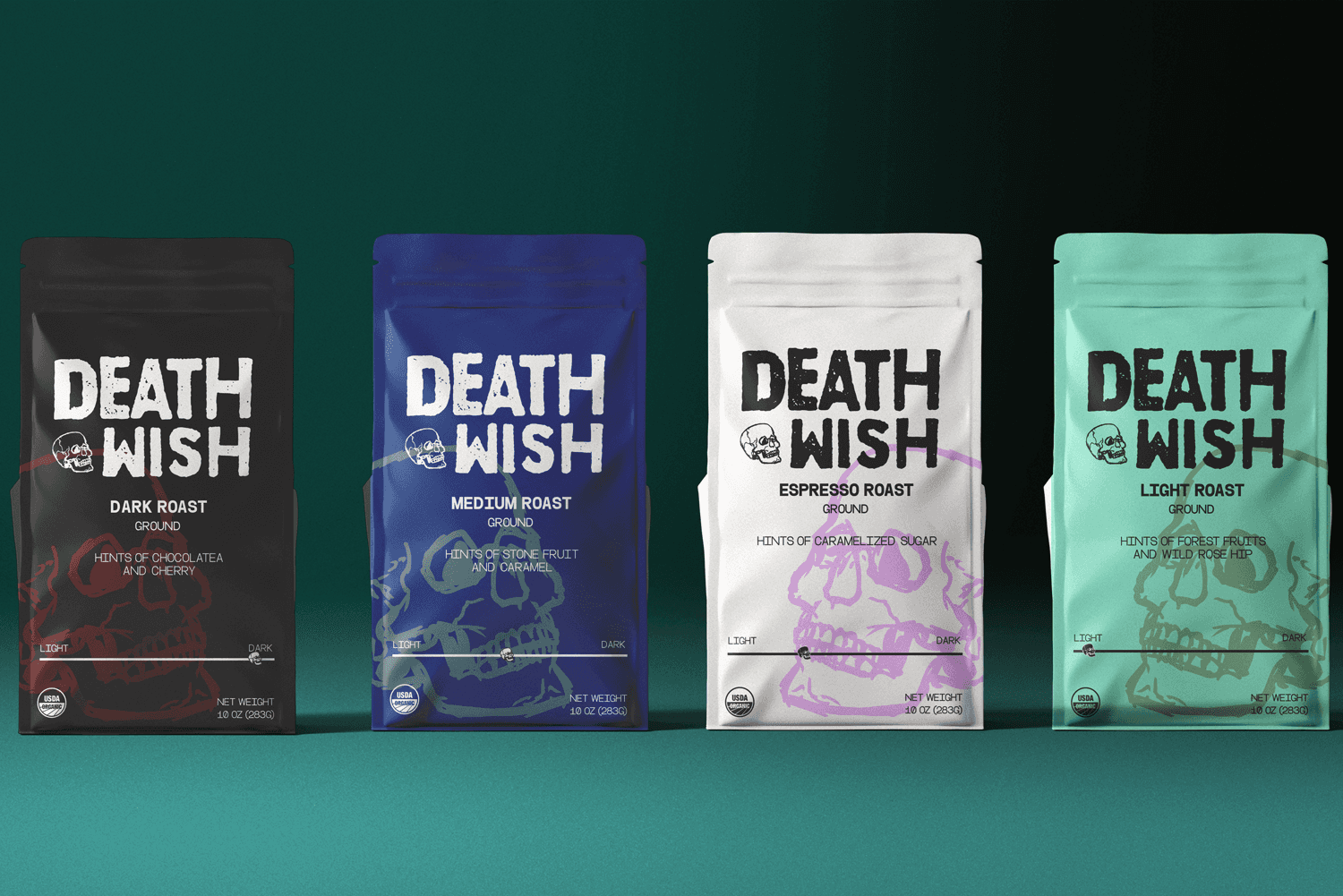 The goal of this project was to breathe new life into the identity of Death Wish Coffee, a brand known for its ultra-strong coffee and bold attitude. The aim was to elevate its visual identity while preserving the rebellious spirit that resonates with its core audience. This rebrand focused on refining the brand’s personality and enhancing its appeal across packaging, digital platforms, and marketing materials.