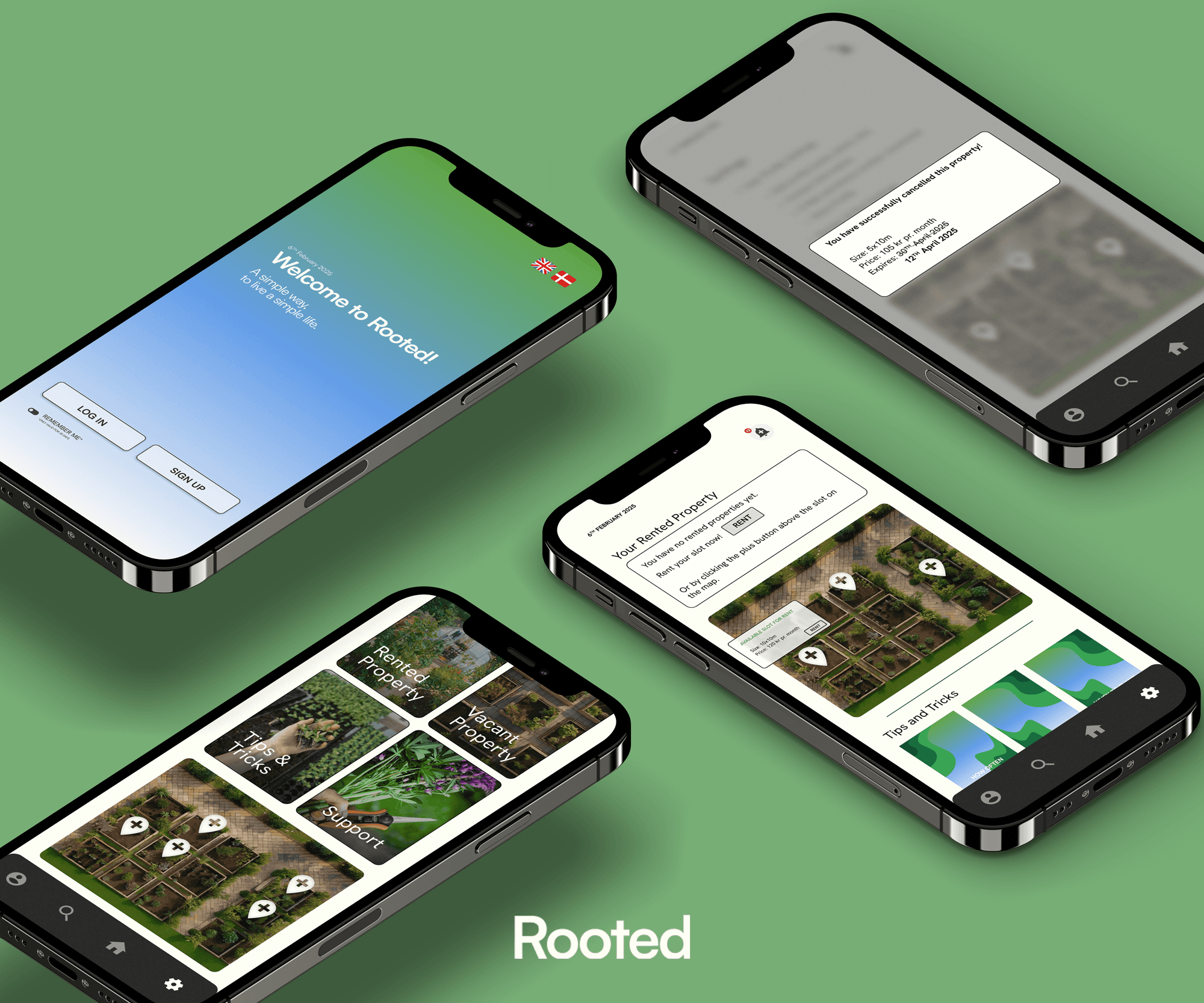 The primary objective behind the "Rooted" app project for DEAS was twofold: to significantly enhance community engagement within urban gardening initiatives and to streamline the administrative process of managing garden plots. Our aim was to create a digital platform that empowered residents to easily discover and rent available garden spaces, fostering a sense of shared purpose and connection to nature within urban environments. Concurrently, the app was designed to provide DEAS with an efficient, transparent, and user-friendly system for overseeing garden plot allocation, rental agreements, and ongoing support for gardeners, ultimately optimizing the utilization of these valuable green spaces.